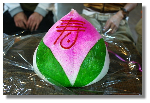 阿偉今晚跑去參加古墓的慶生會,跟一群朋友閒話家常.呵呵.這次的慶生會大夥不是準備一般的西式生日蛋糕,而是如上圖所示的巨大中式壽桃.這顆壽桃巨大到讓人覺得很搞笑.壽桃內可是還裝有許多的小壽桃喔.(可惜不是桃太郎)不過這棵大壽桃應該是"中看不重用".摸了一下麵皮.感覺質感很粗糙,應該不會很好吃吧?!(由於阿偉我不是最後才離開生日會,所以不知最後這顆壽桃的命運為何....該不會是扔了吧???)