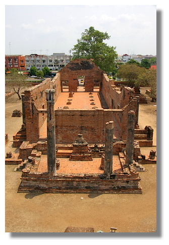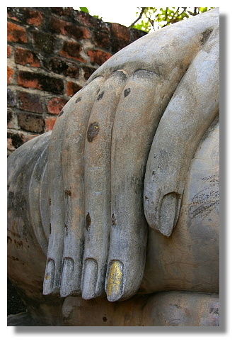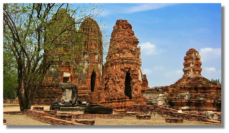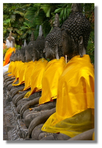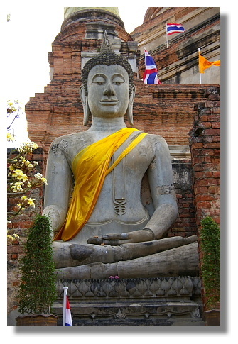 註:Wat Yai Chaiyamongkhon:本寺以臥佛和寶塔最為著名,塔旁有大群的佛像.若是仔細的觀察,便可以發現佛首和身軀竟然不是同一個時代所雕塑的.原來這是因為當初修築驛道,為了貪圖方便,不擇手段的砍下佛身,藉以施工填路,實屬一奇.(泰國觀光局資料)