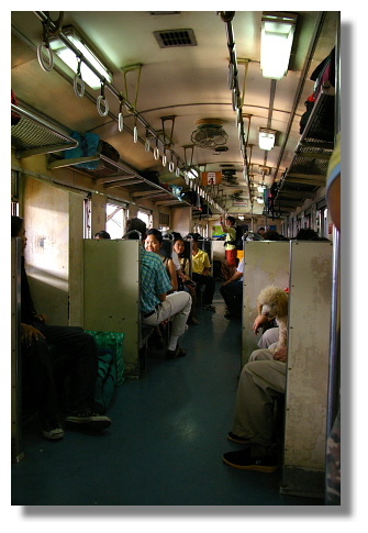 這天一大清早起床後,由於飯店四周沒有什麼好吃的餐廳或是路邊攤,就吃昨晚吃剩的蓮霧當早餐.(真克難)來到飯店一旁的曼谷火車站買了張從曼谷出發到大城的火車票,看一下時間表,這趟行程大約要花個1個半鐘頭的時間.(不過車資只要差不多台幣20元喔,超便宜的)原先還會擔心要怎麼搭火車,買票的時候售票人員就會跟你說要去哪個月台等,所以還蠻簡單的.到了指定的月台後,就看到許多的老外背包客也在等火車.這讓我放心不少,反正就看他們怎麼做我就跟著做囉.(easy)20元的車資果然是一分錢一分貨.所搭的火車就像台鐵之前的普通號列車,沒冷氣,沒乾淨的車廂,只有數台電風扇在車廂上賣力的運行著.車上擠滿了各式各樣的乘客.老實說還蠻有趣的,這樣才叫融入當地的生活囉.火車離開車站後速度算是蠻慢的.不過一離開市區後速度明顯加快.涼風一直吹進車廂,再加上電風扇的助力,其實一點也不會覺得熱.阿偉我發現坐在附近的一位泰國女子居然一直在看我.為了逗她/確定她是在看我,我還裝了幾次鬼臉說.嗯,沒錯,她真的是在看我.是我長的太怪嗎?還是她很好奇這個黑的跟泰國人一樣的人怎麼行為都不像當地人?Anyway.一個半鐘頭的行程說快不快,說慢也不慢.到了大城,剪票人員還會用英文在車廂內告知大城已經到了.跳下了火車,跟那位女子揮手說掰掰後,便正式開始這日的大城一日遊.(結果費用超省,共花了不到泰銖5百)
