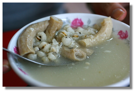 至於我在赤崁樓一帶吃了什麼?共計有:義豐阿川冬瓜茶(我點了冬瓜茶加珍珠),鎮傳四神湯(我跟我同事點了碗粿,她還多叫了一碗四神湯),呷霸白腹浮水魚羹(自然是吃了浮水魚羹囉).其實我還有去到永樂市場.這邊據說有很好吃的春捲,割包以及蝦肉肉圓.不過很多店居然門口都公佈說26,27兩天公休.看來這一帶有鄰里的出遊活動吧?!只能說可惜哩.下次再來台南一定會再次光顧這一區.