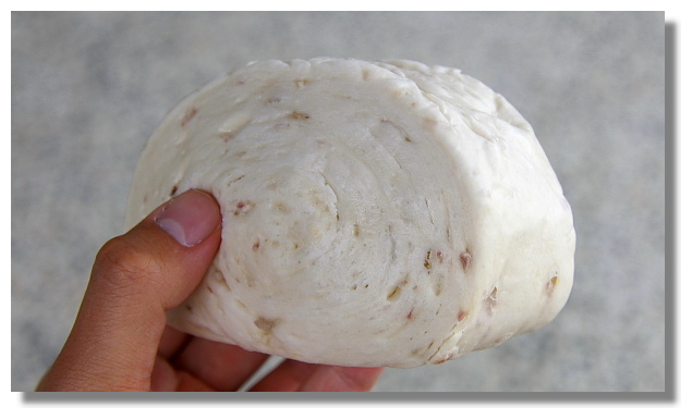 | 卑南肉包內除了肉包還有別種包子.這是芋頭饅頭.可以看到芋頭的顆粒.用料真實在.讚! |