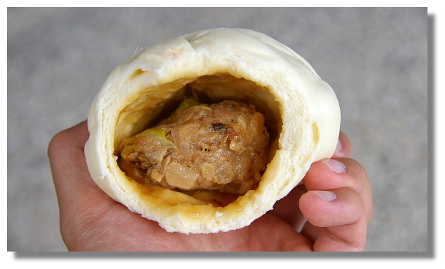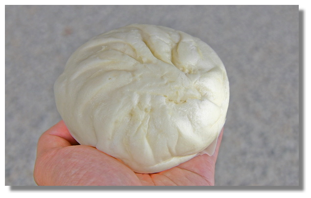 | king size的卑南肉包.大到幾乎跟我的手掌一樣大(抱歉,這顆包子有點醜是因為被我壓到了) |