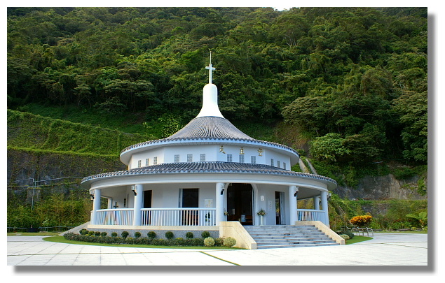 | 五峰旗瀑布旁的天主堂(一旁的小山洞有聖母顯像的神蹟) |