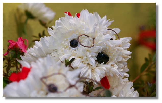 阿偉今天跑去士林官邸參觀一年一度的菊花展.今年菊花展的主題是"菊戲,戲菊".說到菊花,其實他們並不是我個人很喜愛的花種.但他們之中的向日葵卻是一個例外.(我特愛向日葵的說)這次的菊花展感覺有點缺乏新意.之所以會這樣說是因為參觀完後,感覺跟去年的菊花展大同小異.連一些擺飾設計都跟去年所展出的一模一樣.這算是偷懶嗎?這也讓我覺得好像沒什麼東西值得拍的.Anyway.今天去參觀的人潮還蠻多的.沒事做的話是建議可以來這湊湊熱鬧囉.呵.