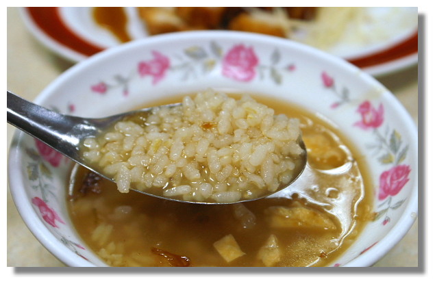 老街入口對面有一家餐廳叫周記肉粥.看介紹說這家店創立於西元1956年.(算一算它也已經有50多年的歷史了)據說它在萬華是一家很有名的店.既然如此,我當然要來試吃看看囉.(聽說以前它只營業到中午.但為了服務廣大的饕客,現在已經將營業時間拉長到下午4點多)阿偉我到這的時候已經是下午兩三點了.但來餐廳用餐的人依舊是人潮不斷.既然店名說是賣肉粥,我當然要點一碗來嚐嚐.另外我也點了份紅燒肉當配菜.以下就是我的食後感想囉:這肉粥我個人覺得只是還好而已啦.它並沒有什麼讓我覺得值得驚喜的地方.算是一碗中規中矩的台式肉粥.不過說到這紅燒肉....哇勒,怎麼那麼的美味呀?!外酥內嫩的滋味可以用好吃的不得了來形容.超推薦的.(不過它不算便宜.採秤重方式計價)