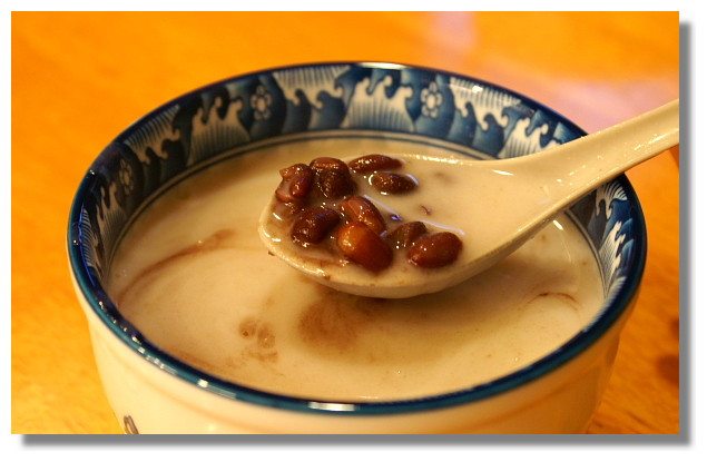 | 阿卿杏仁茶:個人我喝這杏仁茶感覺像是在喝京都念慈庵川貝枇杷膏(照片中的是小碗的杏仁紅豆湯,$35) |