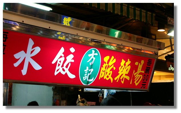 來到了六合夜市,首先我先來杯我非常喜愛的鄭老牌木瓜牛奶當"開味湯",之後便開始在夜市裡尋覓這晚想吃的美食.就在鄭老牌攤子的不遠處,我看到了一家賣水餃的攤子.攤子上面的招牌寫著"方記",還蠻多人吃的.看這家的水餃都是現場現包現煮的,想必東西應該都很新鮮吧?!有這念頭後,我就爽快的找個位子給它坐下囉.這家賣的東西很簡單,就只有水餃(每粒4元)與酸辣湯(一碗30元)兩種而已.單純的只是酸辣湯引不起我多大的興趣.於是我只點了水餃來嚐嚐.