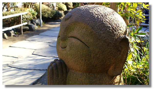 | 這尊卡哇伊版的大地藏菩薩石像深受遊客的喜愛(許多日本妹妹搶著跟他拍照哩) |