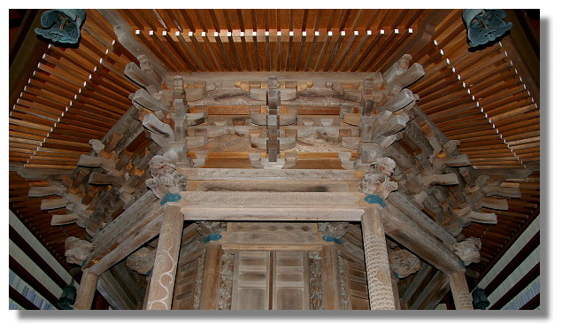 | 佛寺屋頂上蠻有特色的雕刻(這應該是用來驅鬼避邪吧) |
