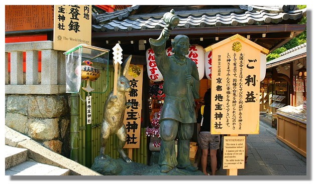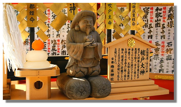 | 地主神社內的主神:大國主命.一旁是他的助手:因幡白兔 |