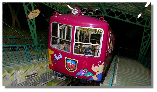 | 要上到摩耶山頂,首先必須搭這種登山纜車到虹の駅(虹の駅只是個中途站.沒看見人只買到這站的票) |