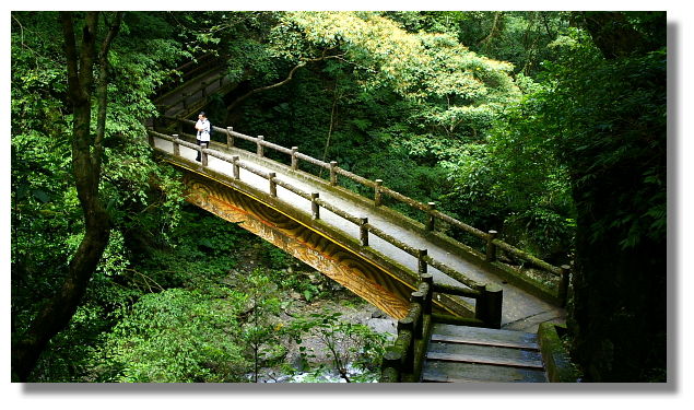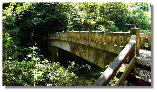 | 離開遊客服務中心後繼續往山裡走,不久後就會來到一處岔路.這裡一條通往處女瀑布,另一條 則是通到滿月圓瀑布.阿偉我選擇先去比較遠的處女瀑布.路上會經過一條小橋名為滿足小橋 |
