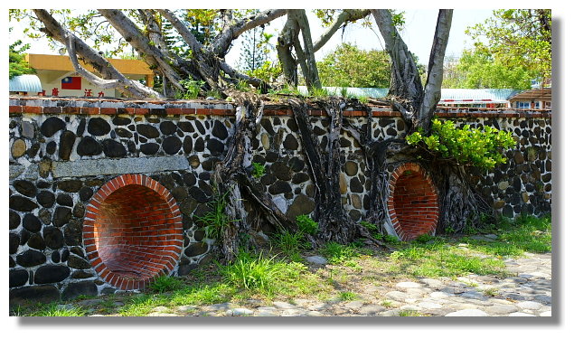 四草砲台上攀生了不少的樹木.樹根與城牆形成一幅蠻特別的景觀 |