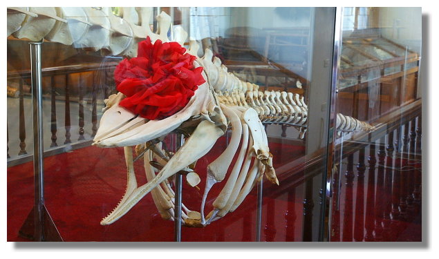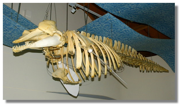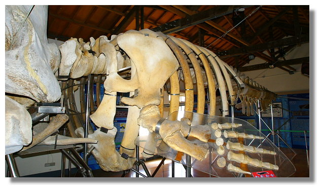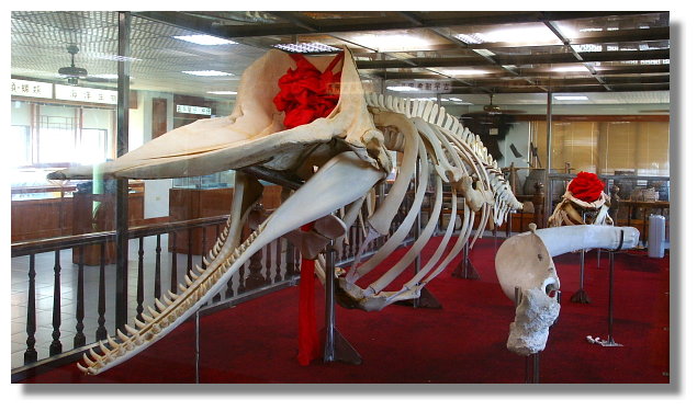 | 這是四草大眾廟旁抹香鯨陳列館內所展示的雌性抹香鯨骨骼標本 |