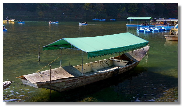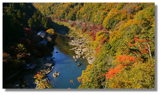 | 看一些遊客在嵐山的保津川上划船,感覺還蠻愜意的 |