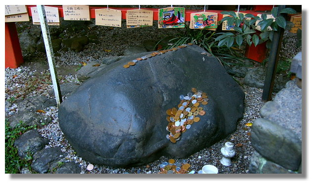 | 這是神社內的龜石.據說只要撫摸這顆石頭,並許下你的心願,你的願望就會實現 |