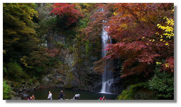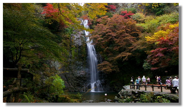 沿著箕面川慢慢的朝公園的內部走去,兩旁的溪谷處處可見已轉紅的楓樹.由於今天的天氣偏陰,所以其實還蠻適合健行的.比較讓我感到訝異的是怎麼這裡會有那麼多的台灣人?你沒看錯,我發現當天來這的遊客我想有超過一半是台灣來的.這真是讓我非常的傻眼.四周三不五時就會聽到台灣人所講的國語(不是大陸腔喔)或是台灣話.感覺我好像已回到台灣似的.怎麼會這樣?!步道的盡頭是箕面瀑布.雖然規模不算大,但還蠻不錯看的.的確是個健行的好去處.推薦喔!