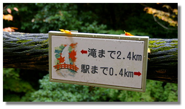 一早離開旅館後,我慢慢步行到阪急電鐵河原町站搭車往大阪的方向前進.在抵達總站大阪梅田站前,我在十三車站轉搭宝塚線的列車,然後在石橋站再轉搭箕面線到終點箕面站.光是搭車的時間就花去我將近兩個多小時.出了箕面站後,一直往前走就會走到公園的入口.車站附近有個旅遊服務中心.想拿一份公園的地圖的話,進入公園前,可先在那索取.這公園與其說它是個公園,個人我覺得它反而比較像是個森林健行步道說.雖然路程有點長,但走起來並不會太難走.