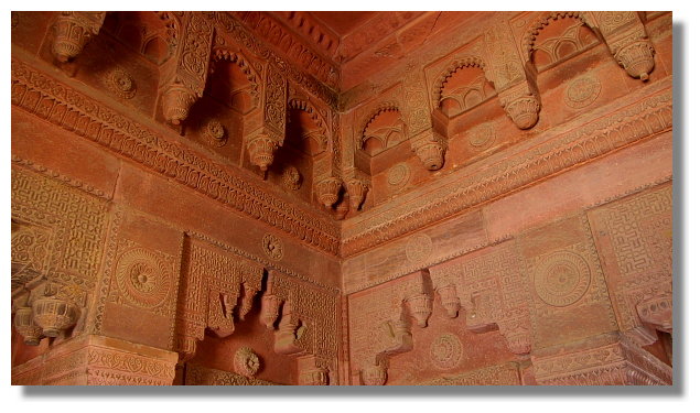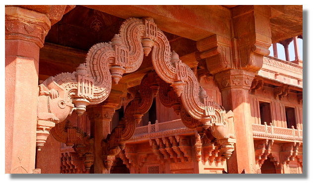 | 法特普希克里遺蹟內的宮殿主要也是由紅砂岩所建造.這裡處處可見精美的雕刻 |