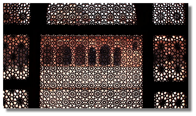 | 站在回教聖人陵墓內的石窗旁,可以清楚見到外面的動靜(但站在外面卻看不到裡面喔) |