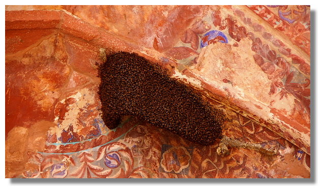 奇妙的是這裡清真寺的高處有許多野蜂的蜂窩.個人我很好奇為什麼牠們會選在這裡築巢 |