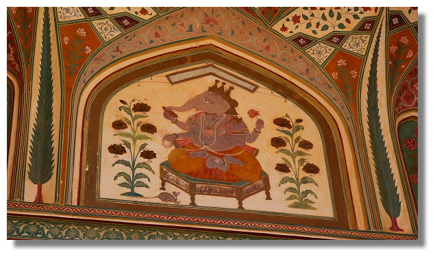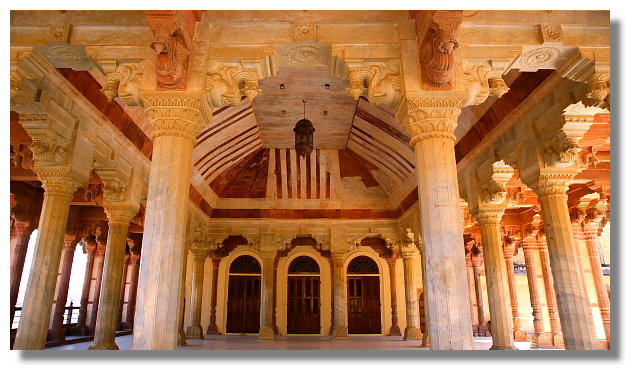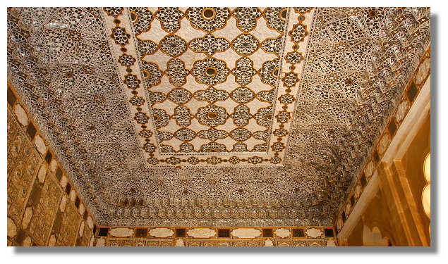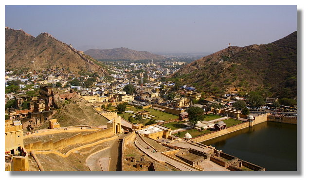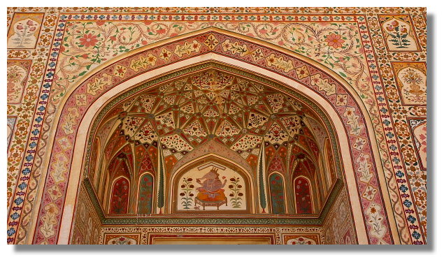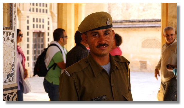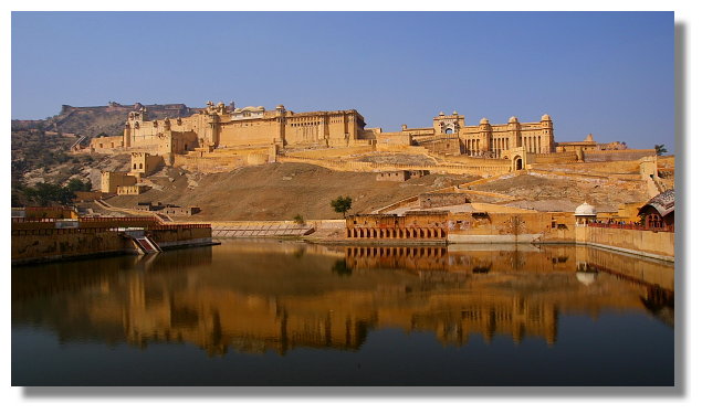 風之宮殿雖名為宮殿,但其實可以說它只是一面牆而已.它正對著市集大街.據說為了不讓宮裡的嬪妃們拋頭露面,但又能觀看市集裡來往的人潮,於是才興建了這棟建築.看完風之宮殿後,我們搭上當地的公車前往琥珀堡.琥珀堡顧名思義是一座城堡.它離齋浦爾市區大約有11公里的距離.它曾是這裡王國的首都.雄偉的盤據在山上給人一種不可侵犯的感覺.從山下走到山上的入口大約要花個10多分鐘的時間.想輕鬆一點的話,可以選擇騎大象上山.不過這要價不算便宜就是了.進入城堡參觀前必須要先買票.特別的是這裡的門票還有分學生票.這讓還持有學生證的我可以用比較低的價格入內參觀.賺到這小便宜頓時讓我還蠻開心的.城堡裡最值得一看的景點是勝利廳(Jai Mandir)內的鏡宮.裡面牆壁上的許多花紋與圖案都鑲嵌著鏡片.而在琥珀堡隔壁的山上有另一座城堡叫齋格爾堡.(Jaigarh Fort)但據說要走個大約半小時的爬坡路才能到,我們便打消上去的念頭.不過如果下次還有機會再來到這,我想我一定會走上去給它參觀一下.