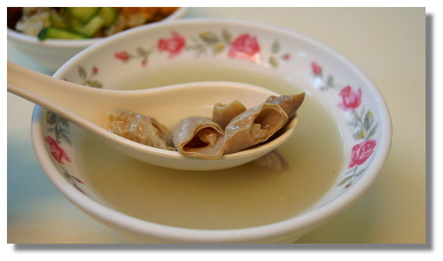 這是店內的四神湯.一碗要價25元.湯頭喝起來很清爽,很適合與米糕配起來吃.(我還蠻愛這個湯的) |