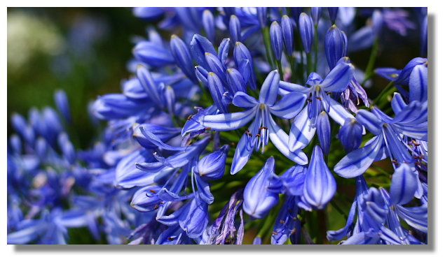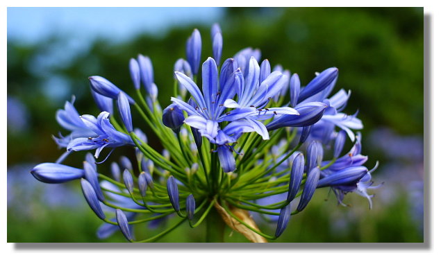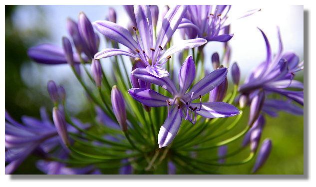 個人我還蠻喜歡這百子蓮的,覺得很有觀賞的價值.這花的顏色有兩種:白色與淡紫色.我自己 是偏愛淡紫色的花(因開的花多,所以結出來的子也很多.因此才被命名為百子蓮,又稱愛情花) |