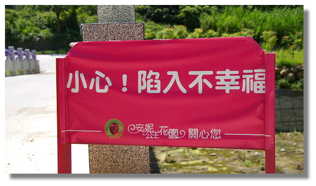 離開安妮公主花園時,會看到這個告示牌.阿偉在此祝福大家天天都幸福喔!(這家 店的地址是:台中市新社區中和村中興街223號.營業時間為早上9點到晚上8點) |