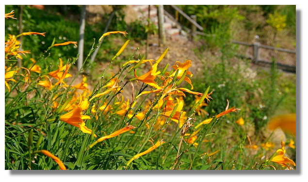 第一次來到沐心泉這裡參觀所給我的印象是規模與東部的金針花產地小了很多.不過這也不會 讓人感到很意外啦.畢竟東部的金針花產地已經有長久的歷史.這裡的規模自然無法與它們相比 |