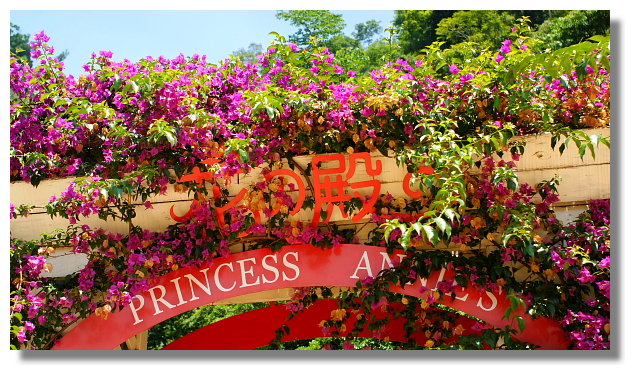 這裡的庭園中有個名為花之殿的地方.這裡號稱"收藏幸福".在這裡店家立了個解說牌.上面 寫著:幸福需要秘密收藏的.有一天,如果你覺得自己很幸福,請把幸福收藏起來吧!因為只有 懂得收藏才會懂得品味,只有懂得品味才會總與幸福迎頭碰到(各位,你覺得這邏輯合理嗎?) |