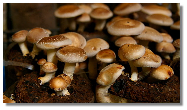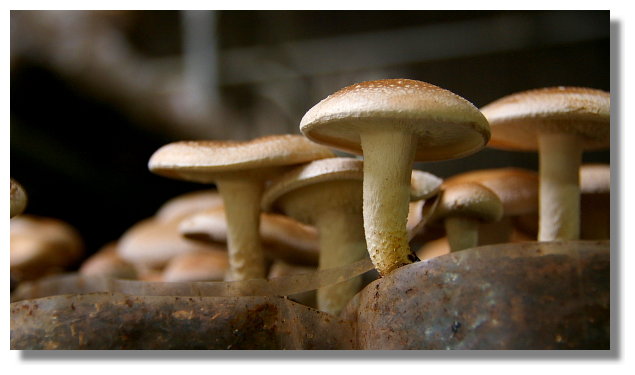 離開沐心泉後,我順道參觀了新社這裡一處名叫阿亮香菇園的店家.顧名思義,這家店是在賣香菇與 菇類.顧客可以親手在香菇園內摘取自己想要的香菇.這種現採現賣的絕對比在市場裡所買的還要新鮮 |