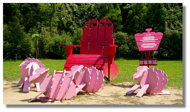 花園內有許多漆上粉紅色的裝飾品.你有看過粉紅色的乳牛嗎?呵呵 |