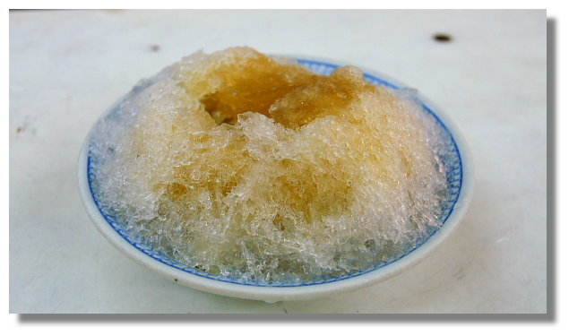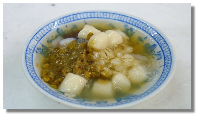 昨晚吃了兩碗麵與一些滷味後,我終於有了飽足感.不過氣溫那麼高,如果能再來一碗冰,那 一定會讓人覺得更加的幸福滿足.呵呵.因此我便再接再厲,慢慢的走到李家圓仔湯那裡報到 |