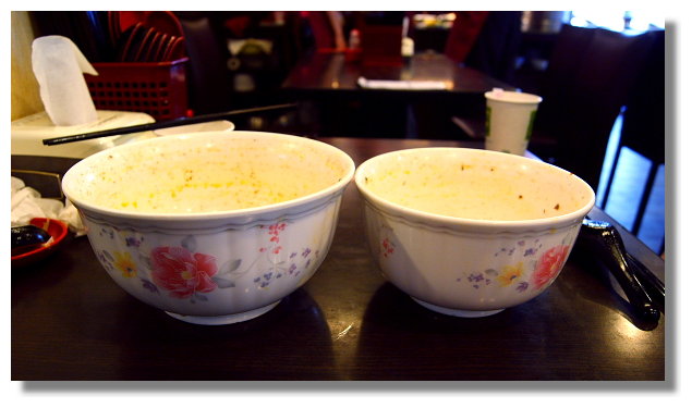 大碗與小碗有差多少呢?大家自己看看吧.我與友人最後都是把整碗的麵與湯給吃個精光 (我倆對這裡的牛肉麵都是給非常高的評價.不過個人我覺得永康牛肉麵還是比較好吃一些些) |