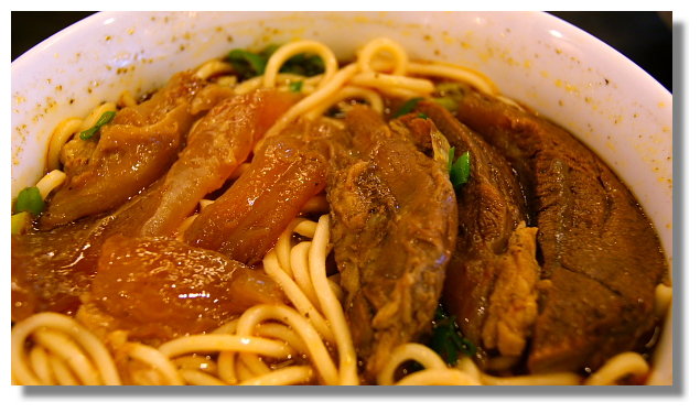 這裡的牛筋也燉的很不錯.不過與牛肉塊相比之下,個人我還是偏愛牛肉塊多些.下次如果再來,我 應該只會點純牛肉麵,而不加牛筋了(不是因為這裡的牛筋不好吃,只是牛肉塊更能吸引到我的味蕾) |
