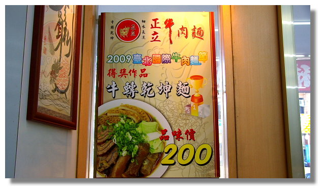 既然這是一間牛肉麵節所推薦的好店,相信這裡的牛肉麵應該都有一定的水準.瞧!這裡賣著它於2009 年台北國際牛肉麵節中所得獎的作品:牛轉乾坤麵.它就是我今天來此的目標(但它的售價就不大眾化了) |
