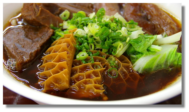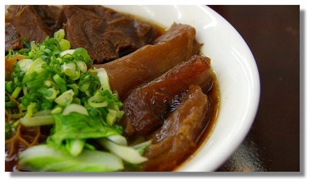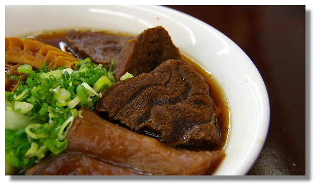 這碗麵的口味如同店家所號稱的"介於清燉與紅燒之間".這湯頭少了紅燒的辣味與油膩,卻又比清燉 更重鹹,更重口味一些.個人我還是比較喜歡紅燒的就該有紅燒的香辣帶勁,清燉的就該有清燉的清爽 濃郁.這"中間路線"雖然也算是個賣點,但比較起來我還是比較喜歡"傳統路線"(這只是個人偏好囉) |